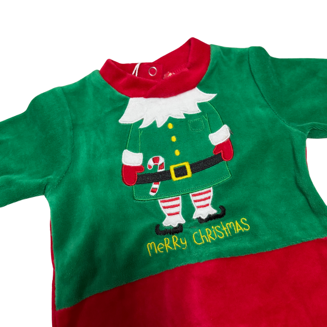 Body natalizio neonato con ricamo e chiusura con buttoni sul retro. 80% Cotone 20% Poliestere.