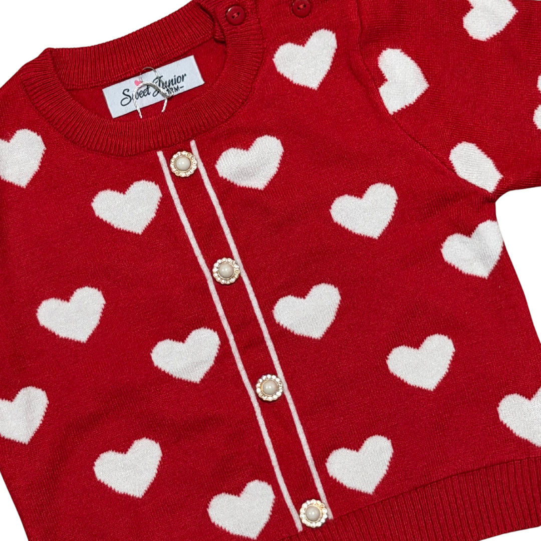 Completo bimba composto da maglione con bottoni gioiello e minigonna con riccio. 50% Cotone, 27% POliestere e 23% Nylon.