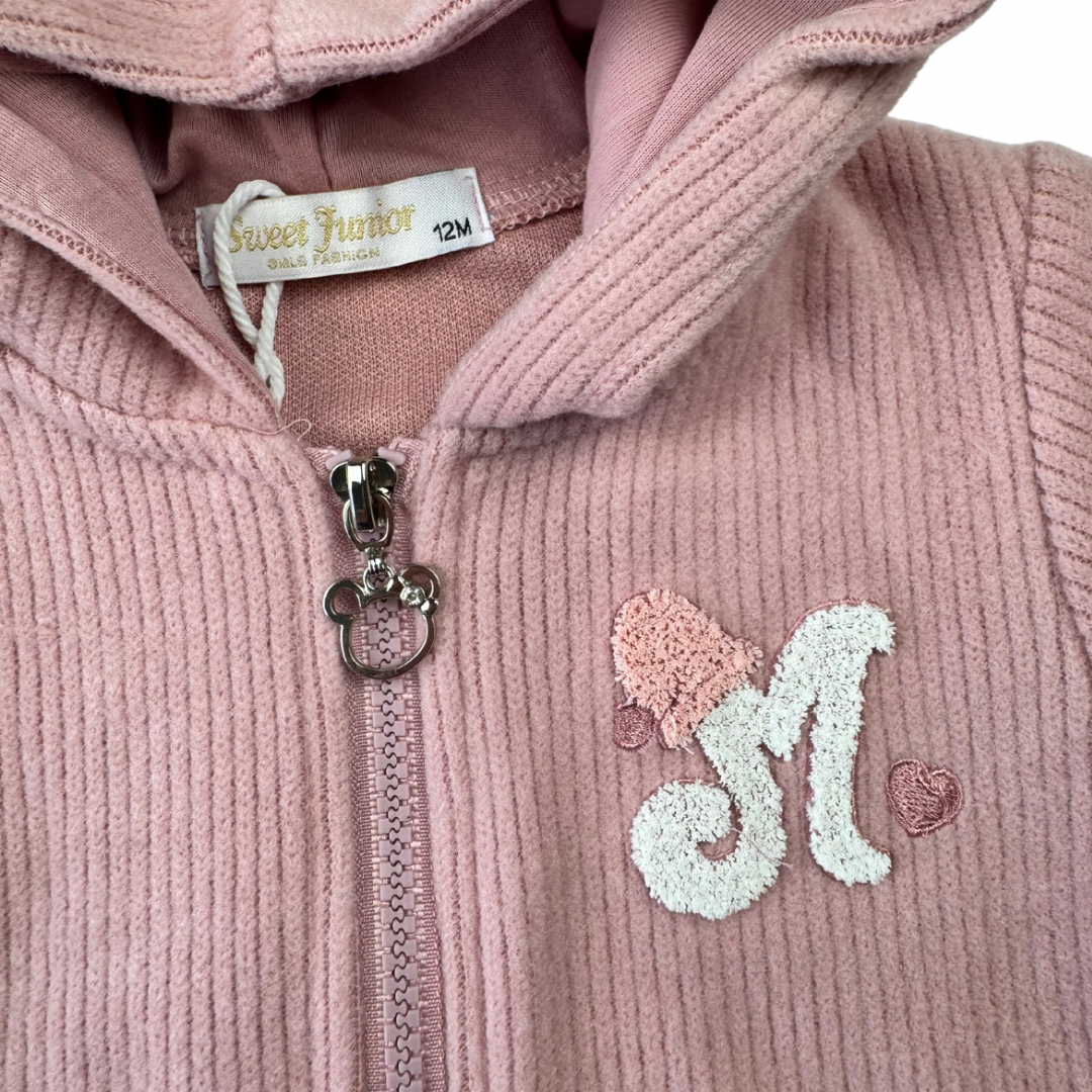 Felpa bimba con cappuccio, cerniera e tasche in 65% Cotone e 35% Poliestere